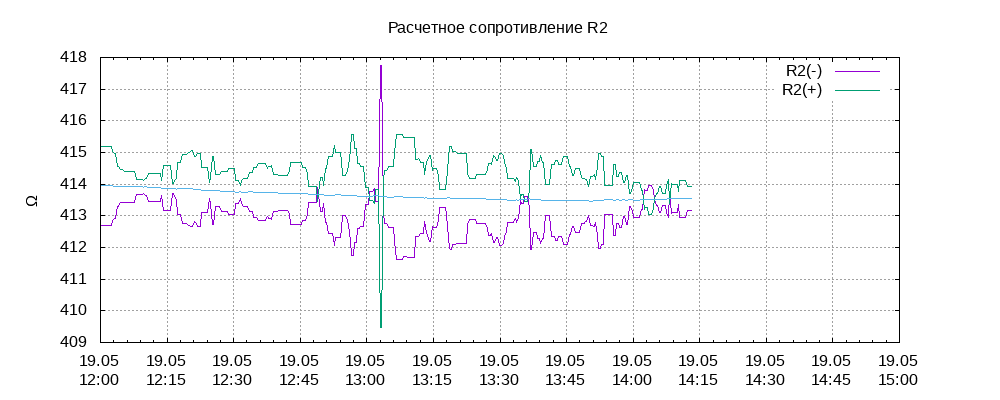 - Задаем дату и время момента, когда значение максимально стабилизировалось и узнаем значение R2 в этот момент, которое нам далее потребуется для калибровки ЕС.