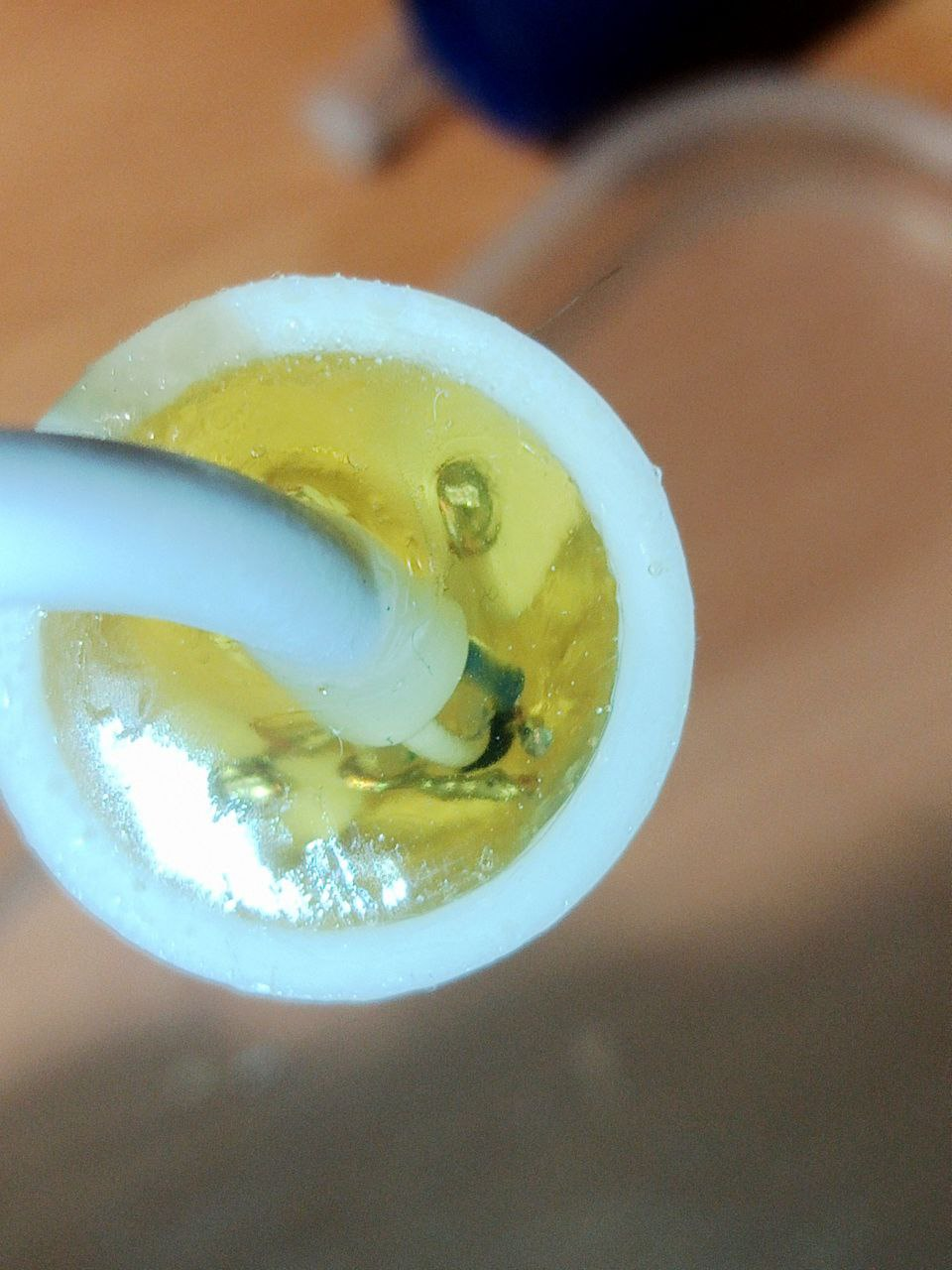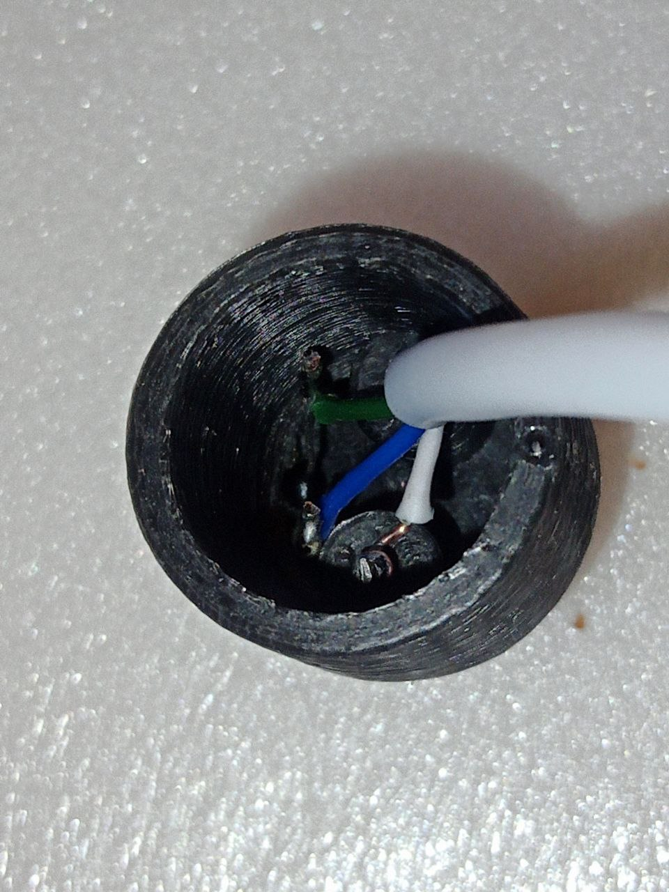- Готовим эпоксидную смолу и заливаем так, чтобы общая изоляция провода оказалась утоплена в нее внутри корпуса