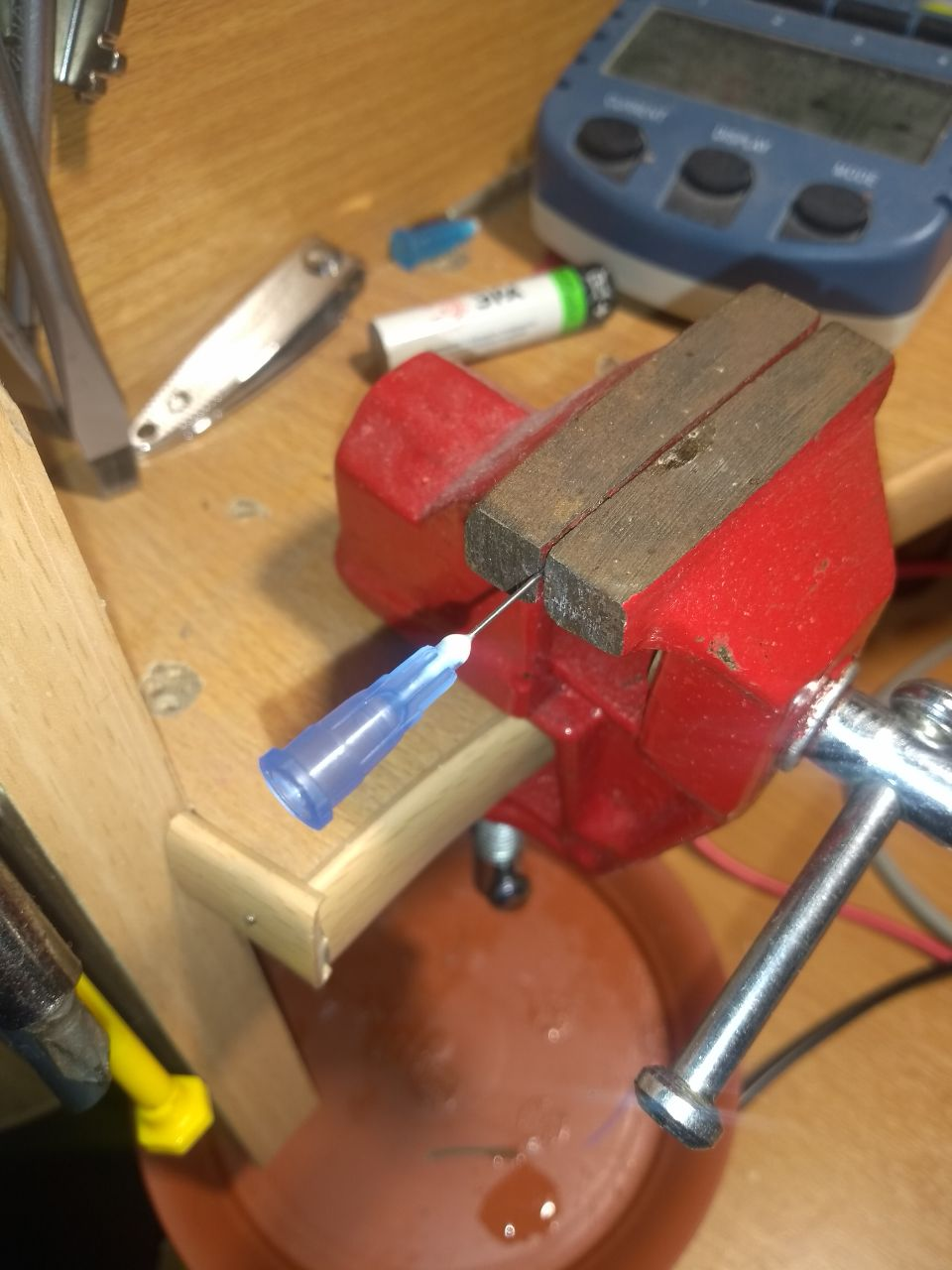 - Два медицинских шприца, а точнее иглы от них из нержавеющей медицинской стали