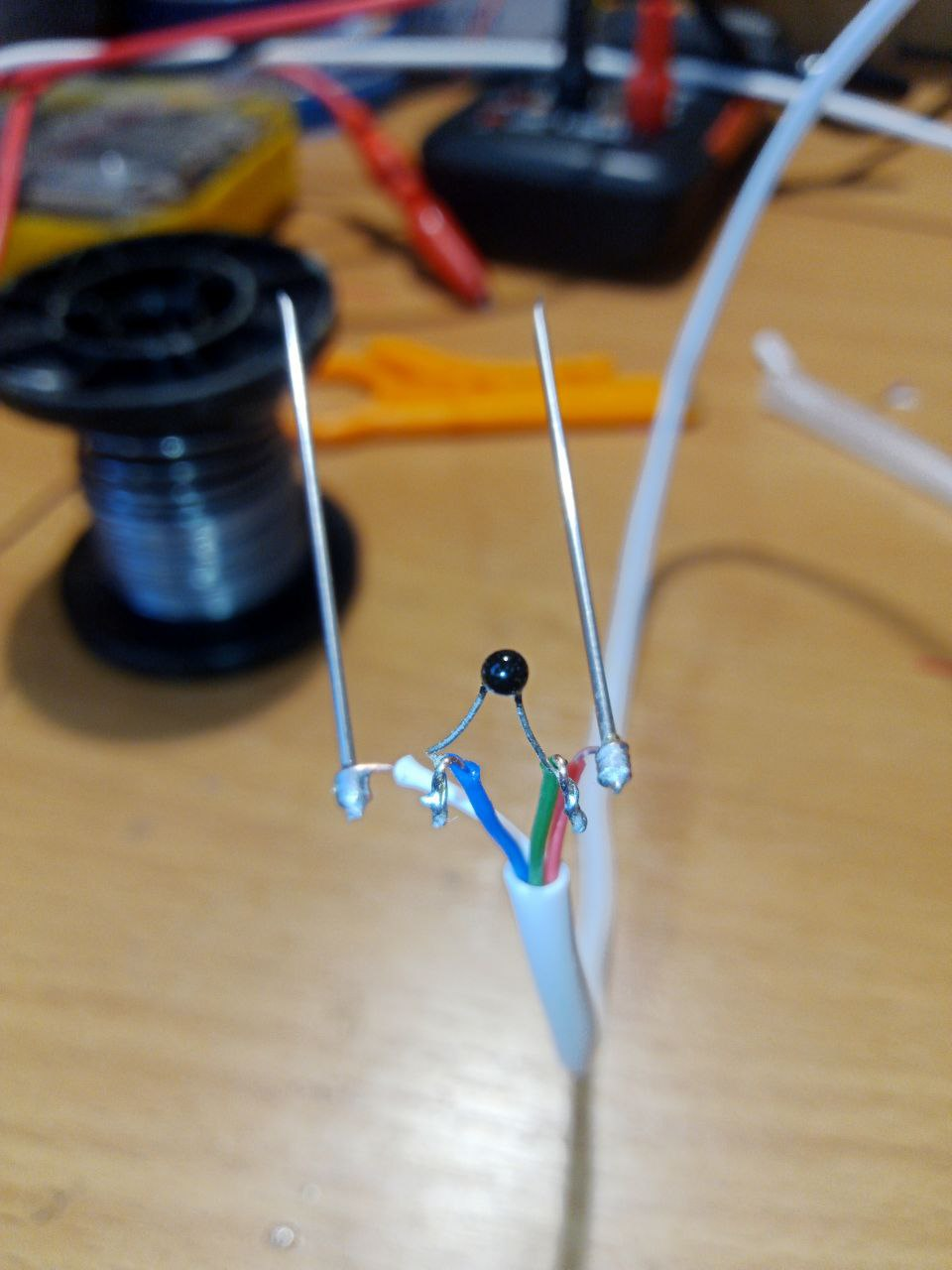 - Припаиваем NTC обычным флюсом