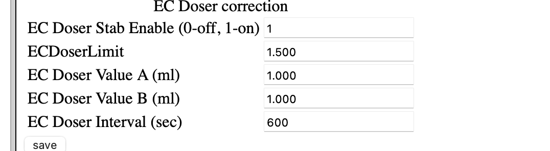 настройки дозера: ставим параметры как на рисунке и калибруем нажав кнопку save - пойдет сразу налив того, что вы указали - цель узнать сколько нальет за 10т шагов