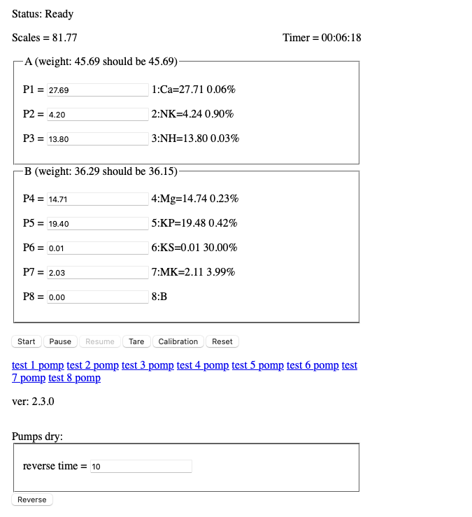 - Методом проб и ошибок подбираем подходящий насос для вашей задачи и определяем, какие соли следует использовать. Обычно порядок действий аналогичен интерфейсу. Устанавливаем нужный вес, нажимаем налив, проверяем вес и записываем название соответствующей соли.